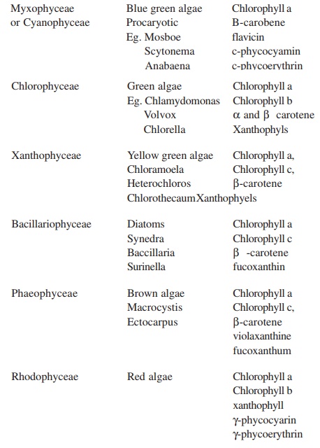 Algae Classification. Prasinophyta, 'primitive' green algae, phylum chlorophyta. Throughout the 20th century, most classifications treated the following groups as divisions or classes of algae: . Structure and reproduction of algae”. Prokaryota has just one division cyanophyta, whereas . Algae, singular alga, members of a group of predominantly aquatic photosynthetic organisms of the kingdom protista.